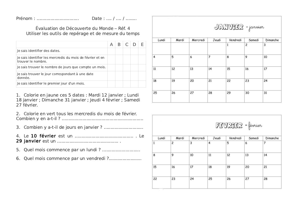 Une petite évaluation sur Le Calendrier :